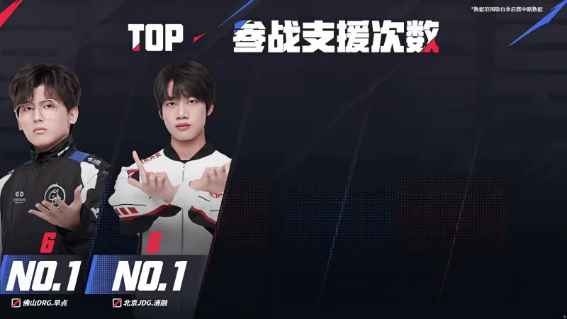 参战支援次数:佛山DRG早点 (沈若飞)、@JDG清融v (黄垚钦)